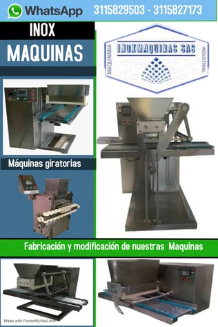 Las maquinas galleteras de INOXMAQUINAS SAS pueden ser diseñadas de acuerdo a su necesidad de su empresa, donde una maquina puede inyectar, corta, inyectar masmelo y ser giratoria, etc., dando gran variedad de opciones del producto de calidad. Servicio de mantenimiento, Automatización y diseño Máquina galletera mixta.